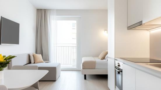 • Des appartements clé en main : entièrement équipés pour un confort optimal (kitchenette, salle d’eau aménagée, espace bureau, rangements et télévision).