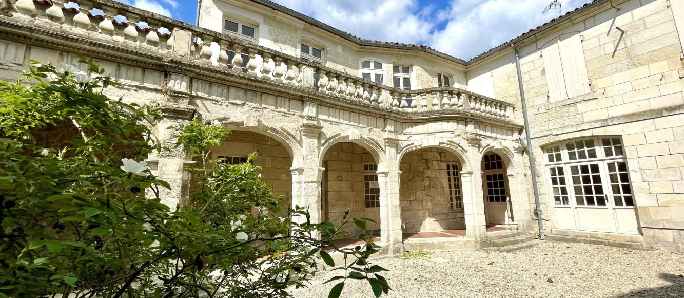 Un ensemble patrimonial, un havre de paixL’ensemble immobilier, qui a abritĂ© pendant plus de 150 ans la Chambre des Notaires de Charente-Maritime, fut Ă©difiĂ© entre le XVIIIe et le XIXe siècle. Il arbore d’élĂ©gantes façades en pierres typiquement saintaises. Sa haute porte d’entrĂ©e s’ouvre sur une ravissante cour vĂ©gĂ©talisĂ©e, avec en arrière-plan un bâtiment auquel on accède par une galerie Ă colonnades du XVIIIe siècle. Ă€ l’intĂ©rieur aussi, les bâtiments rĂ©vèlent de nombreux Ă©lĂ©ments patrimoniaux, qui seront restaurĂ©s avec soin afin de restituer toute la beautĂ© des lieux : corniches, moulures au plafond, boiseries murales, parquet en bois massif dans les appartements et tomettes dans les parties communes, ferronneries, cheminĂ©es…Saintes, la dynamique ville d’Art et d’HistoireĂ€ seulement 30 minutes du littoral royannais et des plages ocĂ©anes de Charente-Maritime, Saintes est une citĂ© touristique rĂ©putĂ©e, au patrimoine architectural riche de 2 000 ans d’histoire, avec ses vestiges gallo-romains et mĂ©diĂ©vaux remarquables.Sur le plan Ă©conomique, la commune s’affirme comme un centre tertiaire dynamique et un pĂ´le commercial de dimension rĂ©gionale : elle accueille, entre autres, le siège de la plus grande coopĂ©rative de consommateurs de France, Coop Atlantique.BercĂ©s par la Charente et sa vallĂ©e verdoyante, les Saintais apprĂ©cient la douceur de vivre de cette commune connectĂ©e, Ă seulement une heure de l’aĂ©roport international de Bordeaux ou de La Rochelle.• 62 000 habitants en mĂ©tropole• 26 906 habitants en ville• 2e destination touristique de France (Charente-Maritime)• 3 millions de visiteurs chaque annĂ©e (Charente-Maritime)• 10e des villes les plus attractives pour un investissement locatif (Masteos/Unkle, 2021)• 3,9 Milliards d’euros en 2022 pour la filière du Cognac• 26 482 emplois (AgglomĂ©ration) pour la filière du Cognac• 50 min de La Rochelle en train• 1h29 de Bordeaux en train• 3h01 de Paris en train• 35 min des plages